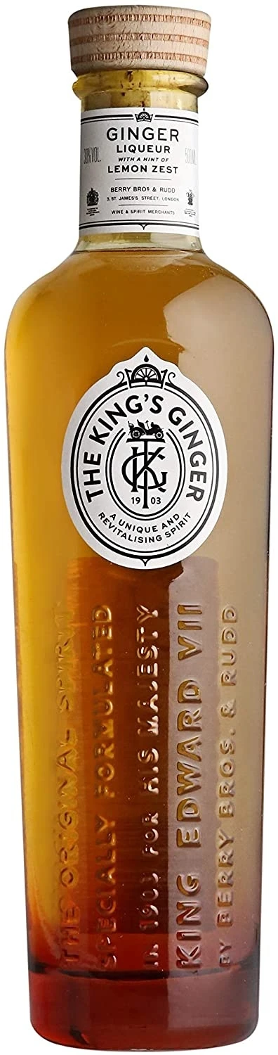 Kings Ginger Liqueur 41% 0.7L Country: Netherlands Volume: 0.7 liters Alcohol: 41% What Is The Kings Ginger Liqueur? This emphatic ginger liqueur was originally prescribed in 1903 for King Edward VII through his doctor, who, like his majesty was a customer of Berry Bros. The medicinal properties of ginger were already known and the full, spicy liqueur was developed by Berry as a prevention and stimulation to make His Majesty revived during the morning rides in his new horseless carriage. The Kings Ginger Liqueur, produced exclusively by Berry Bros & Rudd, have been more than 100 years valued by gourmets, sports men and spirited ladies. Color: Seductive gold. Scent: A direct warm scent of ginger, spicy lemon, raspberry and golden syrup. Taste: First sweetness, followed by the spiciness of ginger and lemon. Delicious satisfied and warming mouthfeel. Aftertaste: persistent and extremely long. Kings Ginger Liqueur is a good price for sale online at Luxurious Drinks your European Liquor Store.